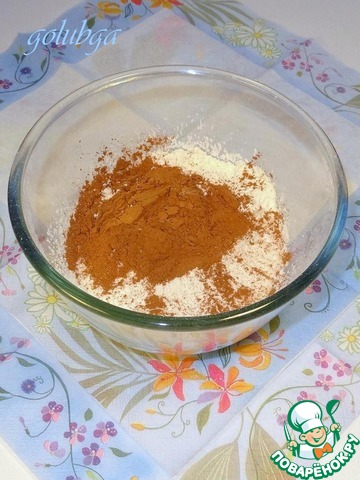Для приготовления теста нам понадобится мука, три яйца, разрыхлитель, 2 столовых ложки сахара Мистраль, 2 столовых ложки какао.