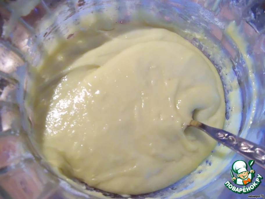 Добавить муку и тщательно перемешать.