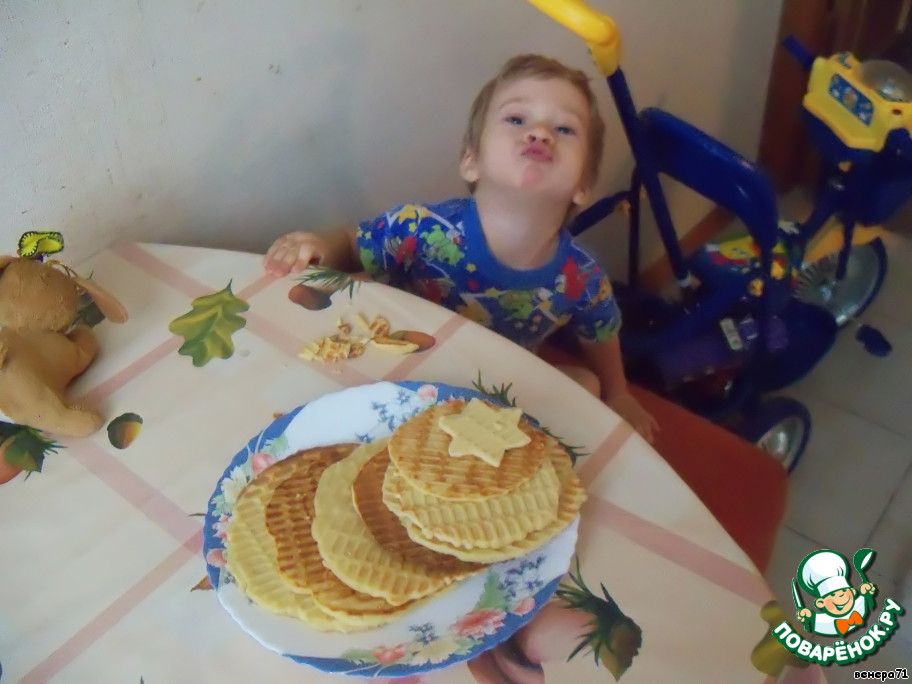Разогреть вафельницу и выпечь вафли.