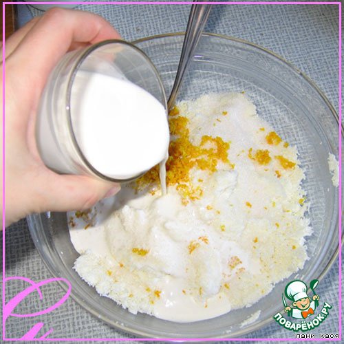 Апельсин тщательно вымыть, цедру снять (я на терке стерла).