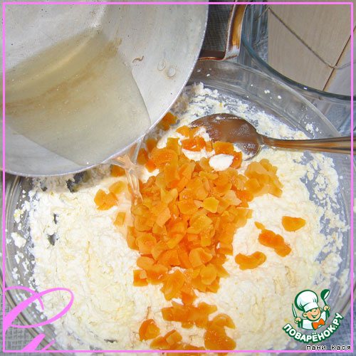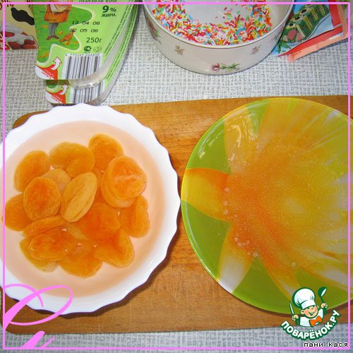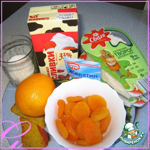 Желатин растворить в НЕБОЛЬШОМ количестве воды, остудить до комнатной температуры, замешать в массу вместе с курагой.