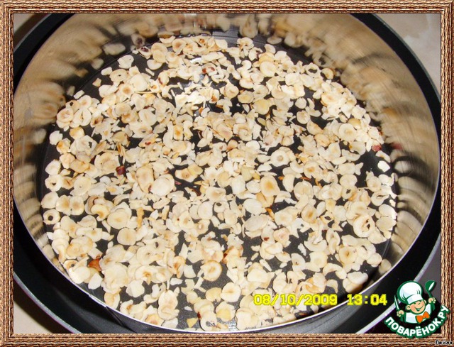 Смазать сливочным маслом и присыпать сухарями(заменила на орехи-фундук) небольшую форму.Разогреть духовку до 200 градусов.