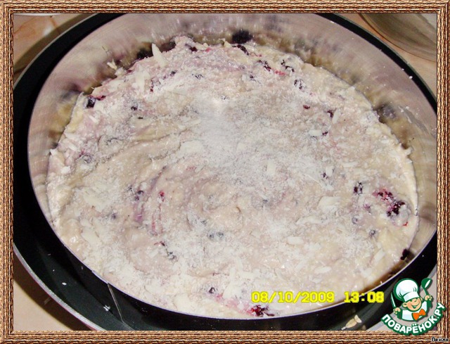 Разравнять в форме, выкладывая больше с краев.Сверху еще чуток обсыпала шоколадом