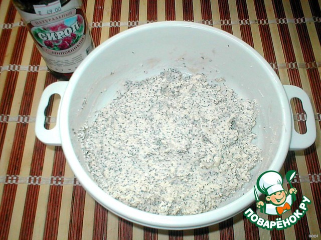 Творог протереть через сито. Добавить мак (по желанию перемолоть в кофемолке) и сироп шиповника.