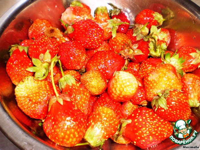 Удалить хвостики, отправить большую половину взбиваться к творогу. Добавить ванилин, клубничную эссенцию. Взбивать 3 минуты.
