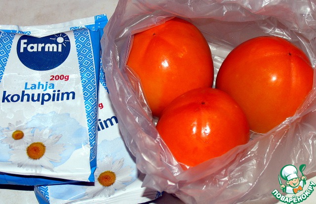 Ингредиенты - творог обезжиренный и спелая, сочная хурма.