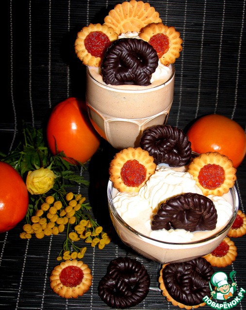 Десерт будет смотреться очень красиво, если насыпать на сливки тёртый шоколад.