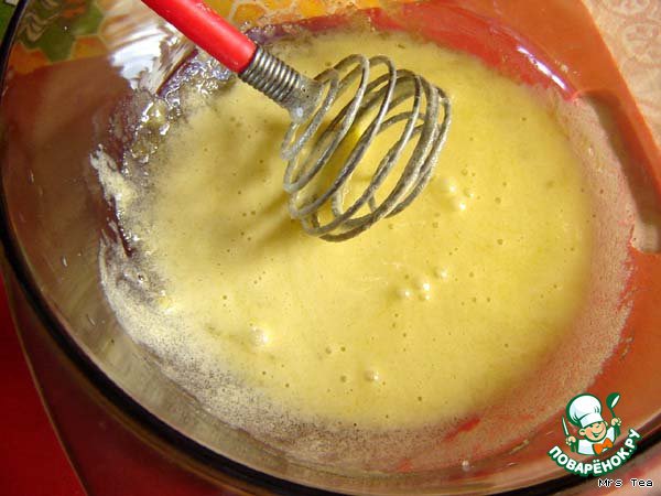 Отделить белки от желтков, желтки взбить с сахаром до светлой пены.