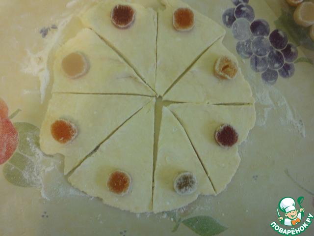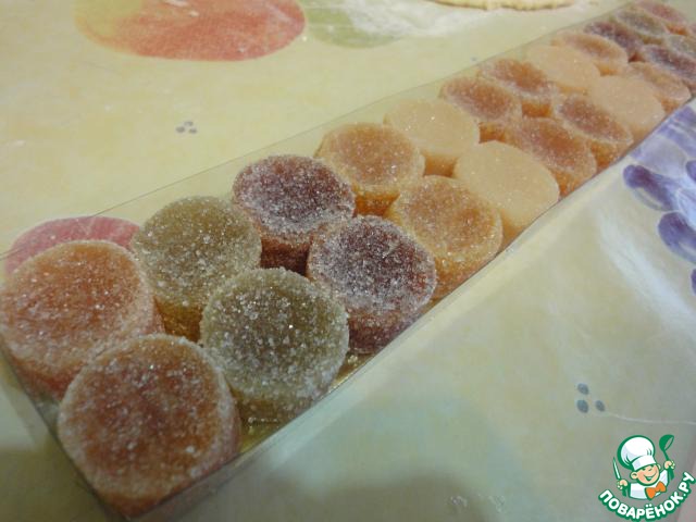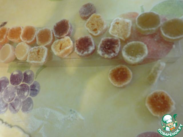 Застилаем противень пергаментом. И пришло время мармелада. У меня такие милые пуговки.
