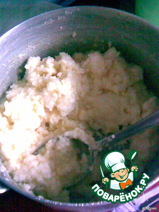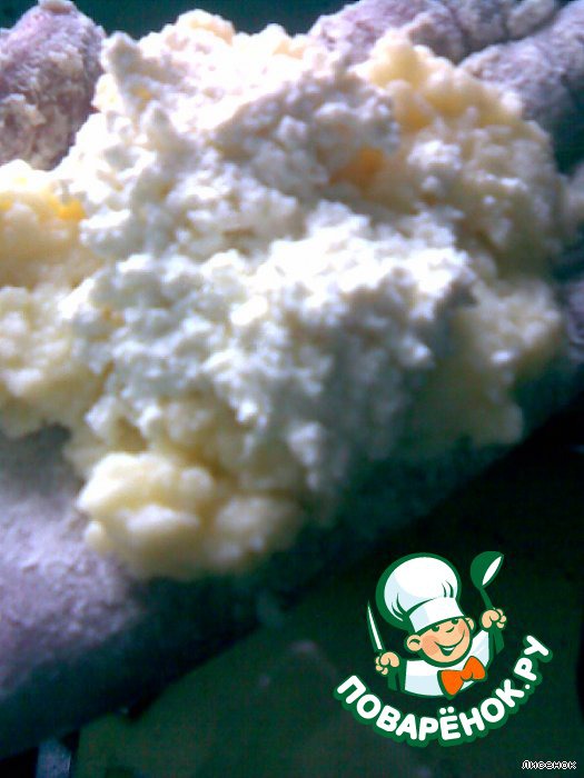 Лепим "пирожки" из каши, начиняем творогом (извините, фото вышло некачественное)