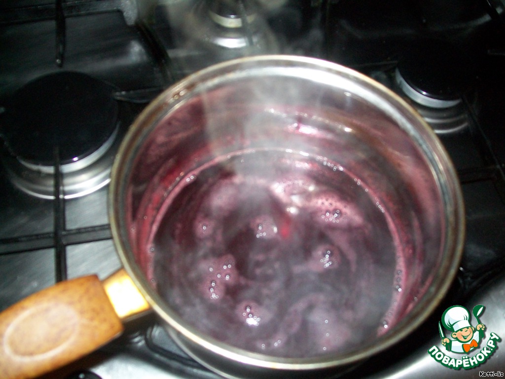 Взять два пакетика желе, размешать их со столовой ложкой сахара (этого достаточно) и постепенно добавить вишневый раствор. Нагреть до кипения при непрерывном помешивании и прокипятить одну минутку. Выключить плиту.