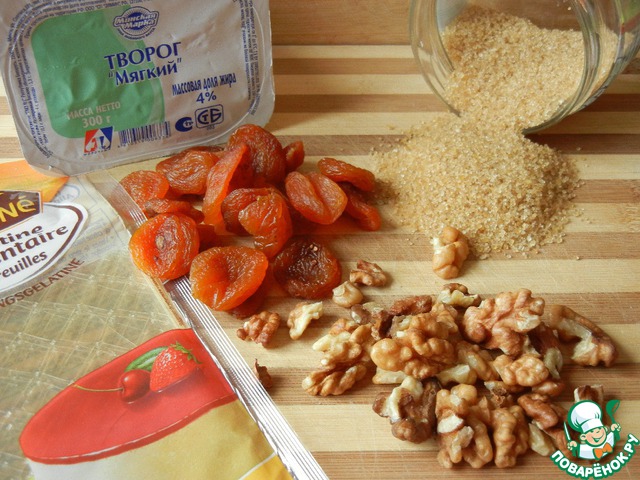 Затем добавляем порубленные курагу и орехи, цедру апельсина (по желанию) к творожку