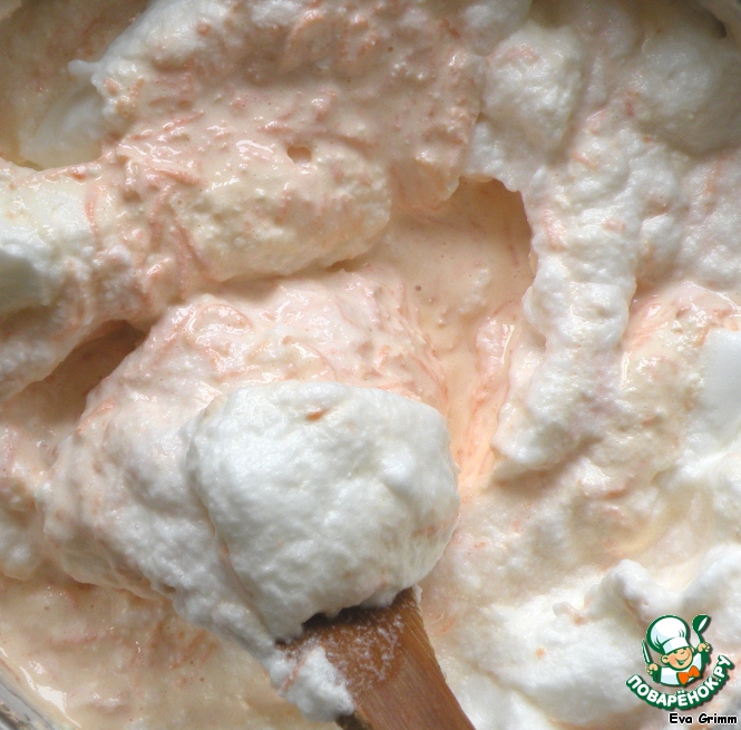 Белки аккуратно вмешать лопаткой в творожную смесь