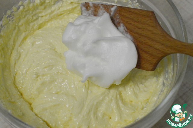 3. Отдельно взбить белки до пиков. Аккуратно ввести белки в творожную массу.