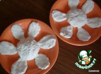 Выкладываем на тарелку наши ромашки, нужно только почаще смачивать руки холодной водой. В принципе, здесь огромное поле для фантазии - вылепить можно все, что пожелает душа.