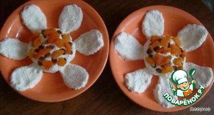 Украшаем ромашки (в данном случае) курагой и изюмом.