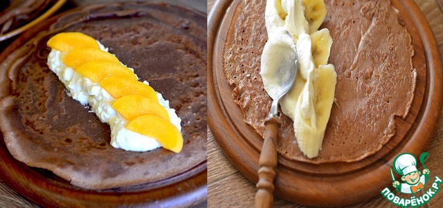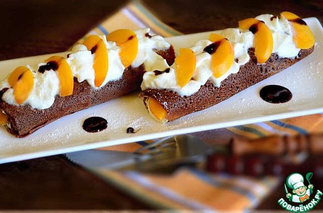 Шоколадные блины с персиковым кремом