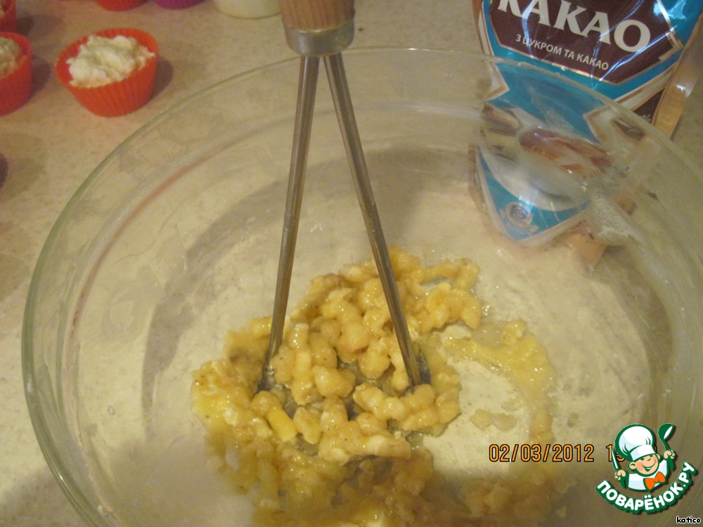 Творожно-бананово-шоколадные мини-запеканки