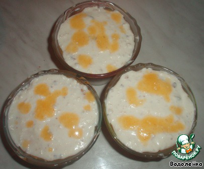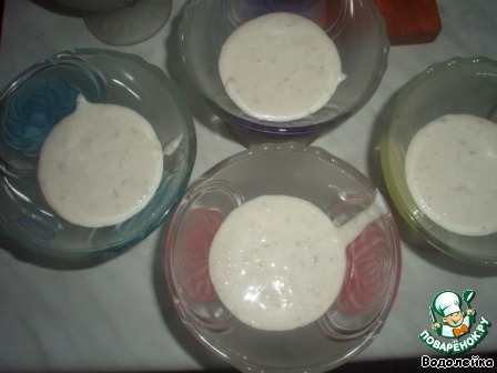 Сверху немного фруктового пюре и поставить в холодильник, чтоб фруктовое пюре немного "схватилось".