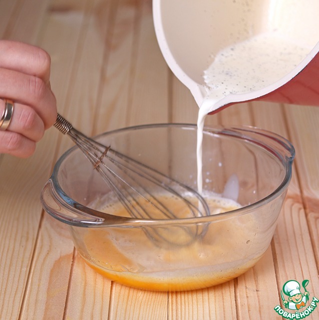 Тем временем взбейте венчиком яичный желтки с остальным сахаром.