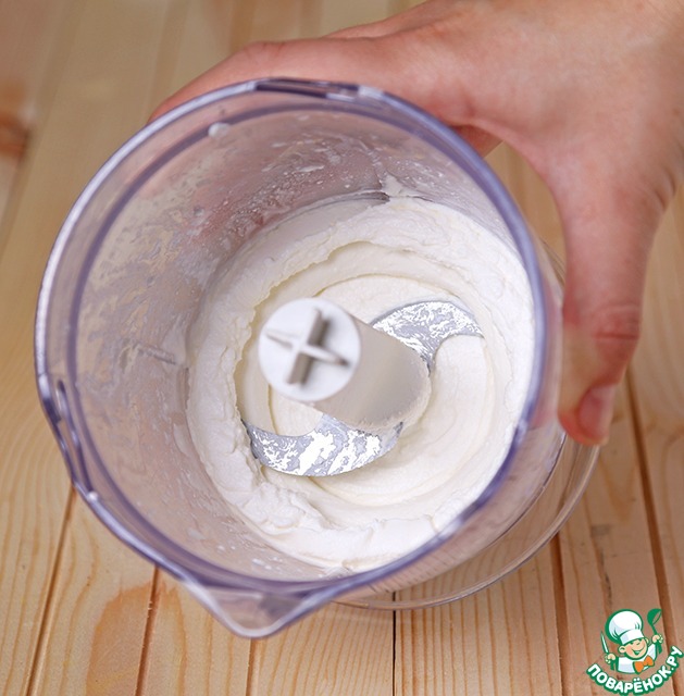Дайте ягодам немного остыть, а тем временем пробейте творог блендером.