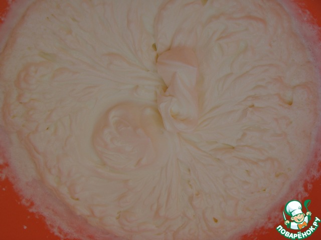 Оставшиеся холодные сливки взбить с 60 г. сахарной пудры.