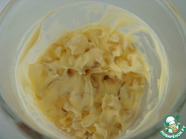 Размягченное сливочное масло растереть с 2-3 столовыми ложками сливок комнатной температуры.