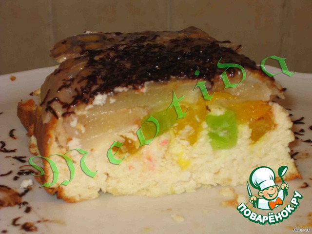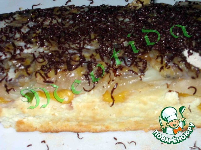 | Нежный творог с медом и лимончиком в сочетании с бананом, нектарином и грушами.... я еще немного ананасовых цукатиков, которые добавляют нарядность и необычность блюду.. под слоем темного шоколада... Вкусный завтрак, полдник... нежный десерт... Для маленьких и больших сладкоежек :) |