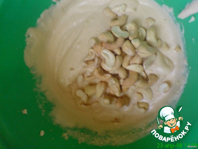 Добавить в смеси кешью и размешать.