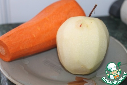 Из моркови и яблока делаем пюре, я приготовила на пару и взбила блендером.