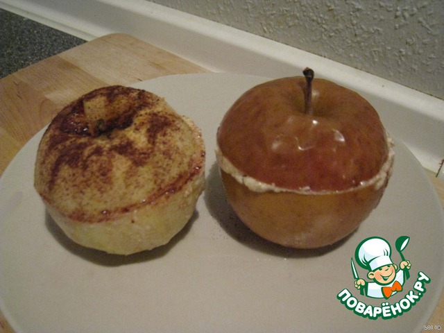 Решила провести эксперимент: какое яблоко вкуснее - очищенное или нет. Очень вкусными получились оба яблочка. И для второго яблока творог смешала со сгущенкой, вместо сахара и корицы. Можно добавить еще орехи, сухофрукты - кому что нравится.