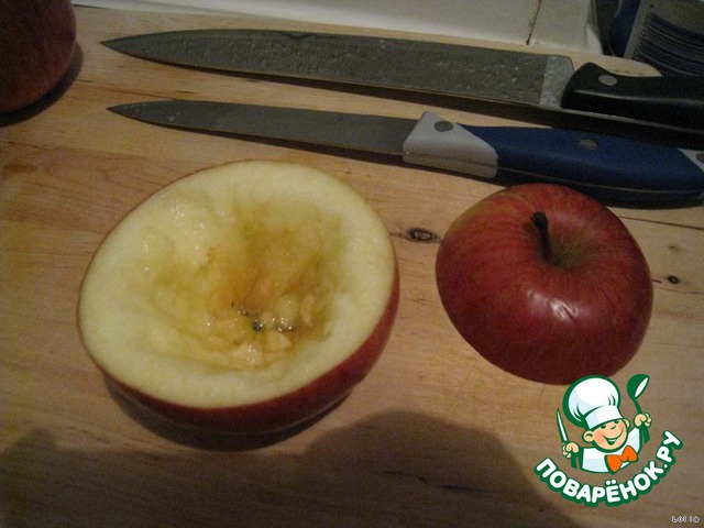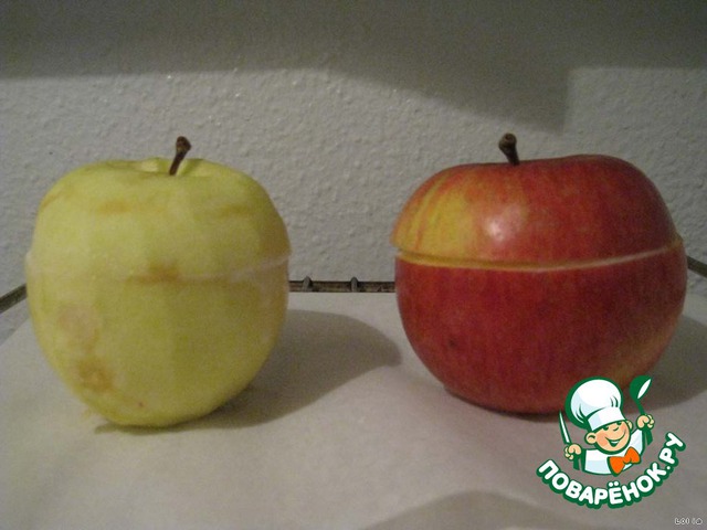 Срезать верх яблока примерно 1-2 см. Это будет крышечка.