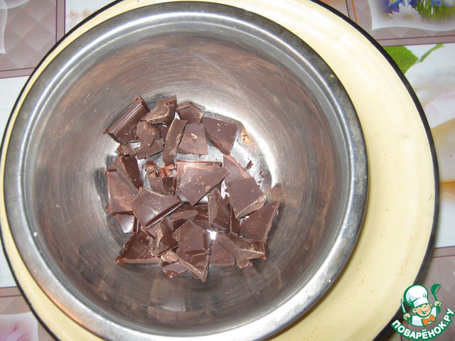 Шоколад растопить на водяной бане, добавить сливки, перемешать.