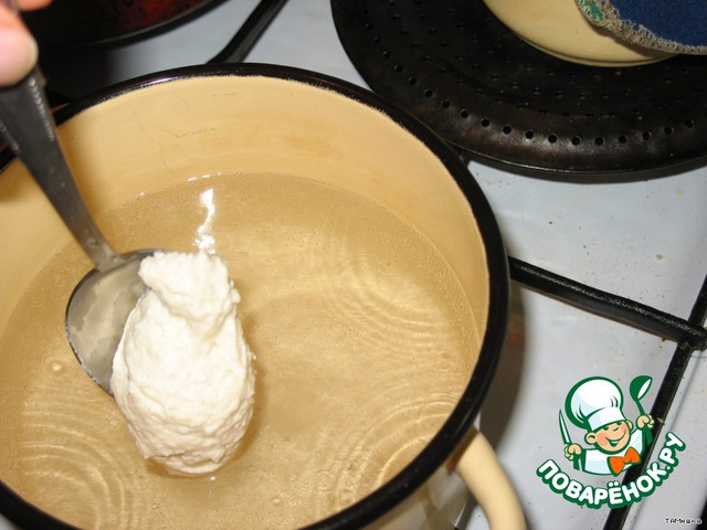 Но потом мне показалось (а может и не показалось), что тесто жидковато, и решила просто ложкой по типу клецек (ну, во всяком случае, так их готовила мама) сварить.