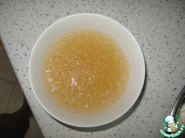 Желатин заливаем холодной водой, у меня быстрорастворимый, я оставила минут на 10.
