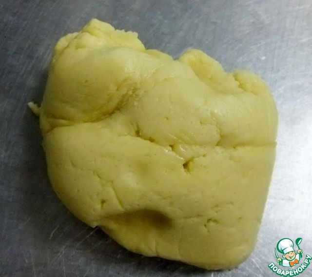 Муку смешать с разрыхлителем и соединить со взбитой массой. Замесить мягкое, пластичное тесто и отправить на час в холодильник. Муки может уйти чуть больше или меньше, в зависимости от ее качества.