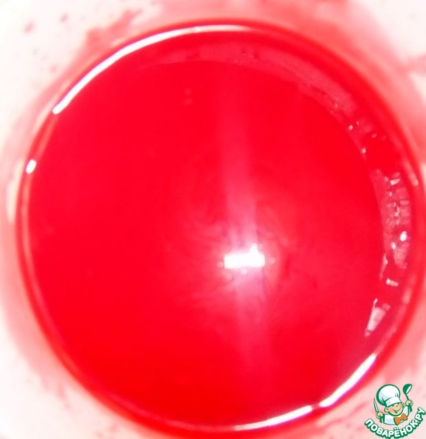 Замочить желатин в холодной воде и растворить в горячем вишневом соке, смешанном с сахаром. Дать остыть до комнатной температуры. Можно не заморачиваться, а просто купить любое желе красного цвета и приготовить по инструкции на пакетике, только воды взять в два раза меньше.
