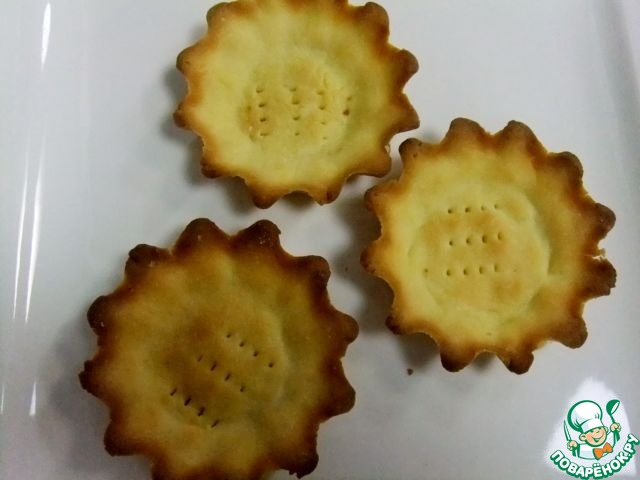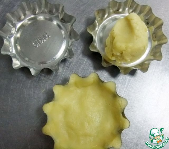 Тесто поделить на части и заполнить им корзиночки. Дно наколоть вилкой, чтобы не вздулось.