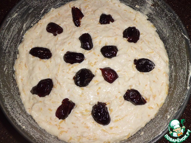 Форму смазываем сливочным маслом (я еще слегка присыпала манной крупой). Выкладываем в неё творожную массу и сверху украшаем финиками. Ставим в разогретую до 180* духовку на 45 минут (ориентируйтесь на свой духовой шкаф).