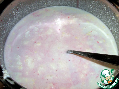 Молоко вылить в ёмкость. Туда же положить рикотту.