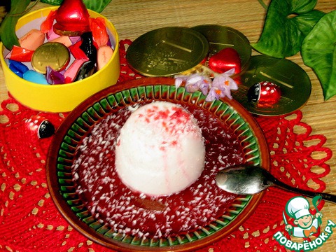 А этот десерт был в силиконовой форме, и я подержала её над паром кипящей водой 3 минуты. После чего выдавила десерт на тарелку.