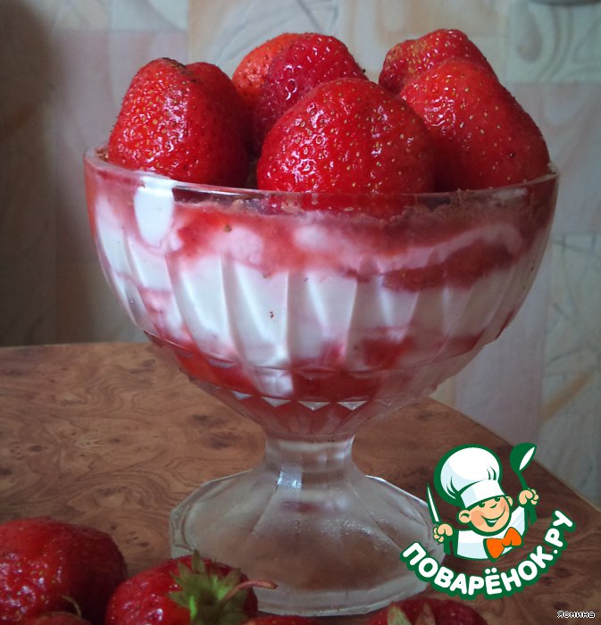 3. Выкладывать полученные массы слоями: первый слой клубника, затем творожная масса и т.д. Последним слоем должна быть творожная масса. Сверху можно посыпать орехами и шоколадом.