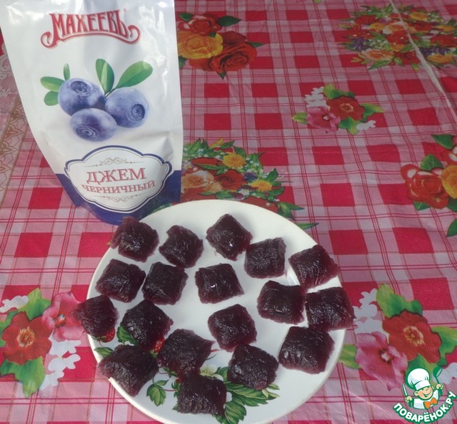 Приготовим желе из черничного джема. Для этого 6 г желатина залить холодной кипяченой водой и оставить набухать.