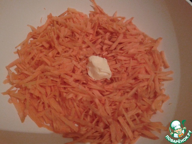 Морковь, масло, вода: тушим минут 10 до размягчения моркови, и чтобы лишняя жидкость испарилась;