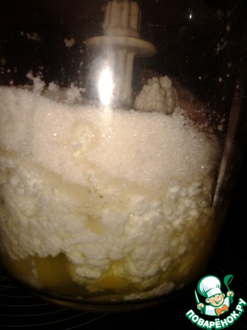В блендере взбиваем яйца, творог, сахар;
