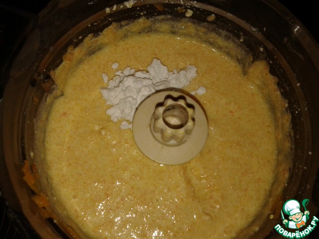 Добавляем морковь, и тоже взбиваем;