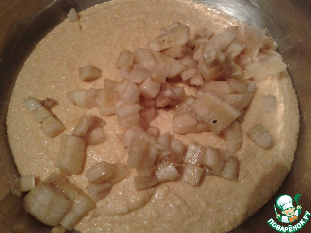 Потом, порезанный мелким кубиком банан;