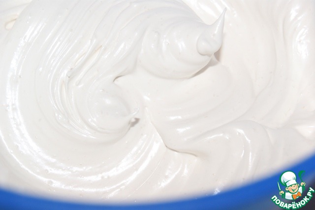 Белки 4 шт взбить с 2 каплями уксуса (у меня белый) в пену и, не переставая взбивать, ввести 150 г сахара. Взбить до устойчивых мягких пиков.