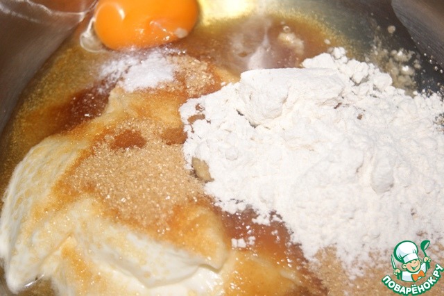 Залить сверху тестом и выпекать в прогретой до 120"С духовке 20 минут. Ориентируйтесь на вашу духовку!