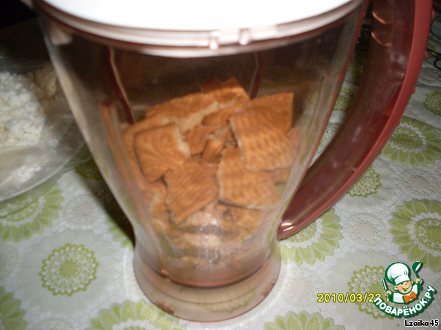 Печенье измельчаем в мелкую-мелкую крошку. Я это делала в блендере. Вжик... и готово...
